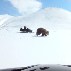 Persiguiendo a un oso con unas motos de nieve cuando de...