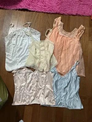 5 Vintage lot Nighty Tops Nylon silk Lace sexy PJs Warners...