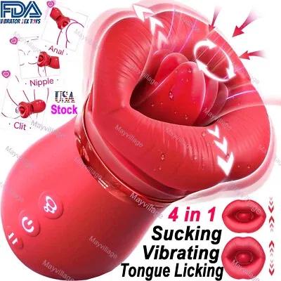 Tongue Licking Sucking Vibrator Sex Toys for Women Nipples Anal...