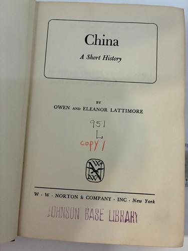China A Short History 1947 Owen Lattimore W.W. Norton Hardcover...