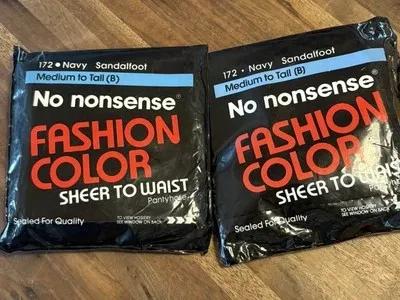 Two NOS No Nonsense Pantyhose NAVY Sandalfoot Med To Tall (B...
