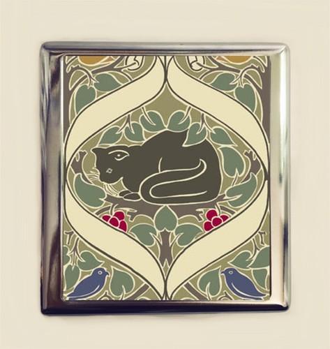 Art Nouveau Black Cat Cigarette Case Business Card ID Holder...