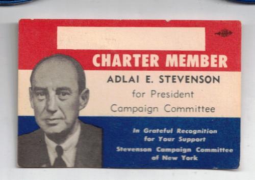 1952 NYS Adlai Stevenson CAMPAIGN COMMITTEE MEMBERSHIP CARD