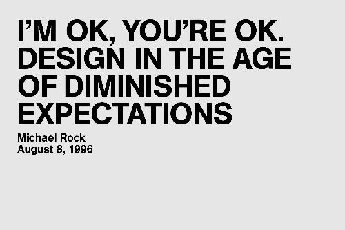 I'm OK, You're OK. Design in the age of diminished expectations...