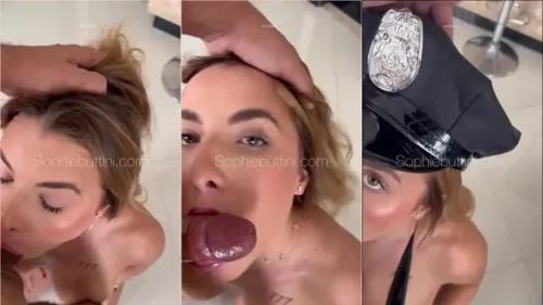 Sophie Buttini, a loira de olhos azuis, tá de farda de policial...