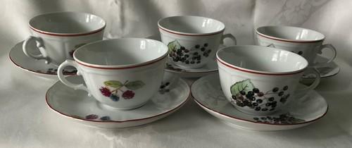 Richard Ginori Olives/Grapes Pattern Set of Five Cups & Saucers