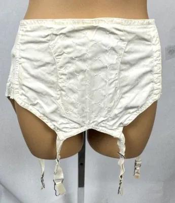 Vintage Open Girdle Garters White Belt Metal Clip Embroidered...