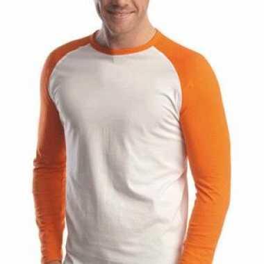 Oranje baseball t-shirt lange mouw | Heren-t-shirt.nl