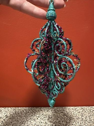 Ornate Christmas Tree Ornament Glitter Purple & Teal SH1