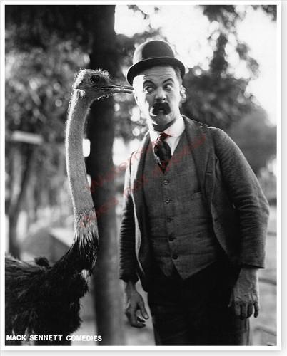 Film Comedian Billy Bevan With Ostrich Silent Movie Silver...