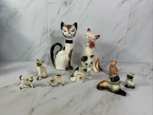 Vintage Lot Of 9 Siamese & Others Cat & Kitten Figurines...