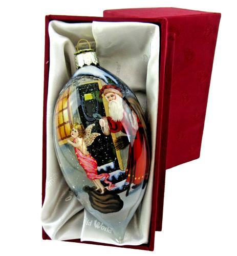 OWC Old World Christmas Ornament Inside Art Santa w/ Angel tear...