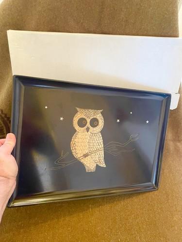 Vintage Couroc Of Monterey Large Owl Inlaid Black Lacquered...