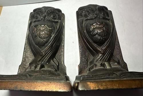 Antique Cast Iron Owls atop Books Bookends Art Deco 1920s Or...
