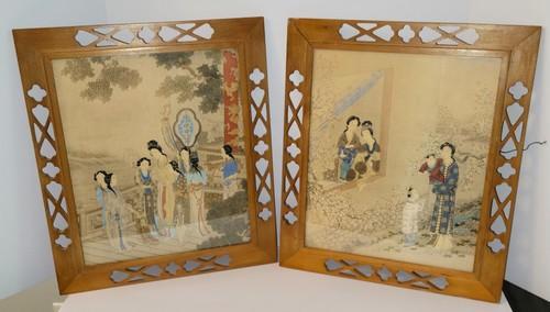 Pair CHINESE REPUBLIC PERIOD Antique PAINTINGS ON SILK Women...