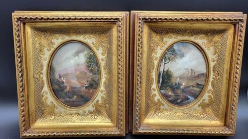 Pair of Vintage Landscape Miniature Paintings, Oil On Copper
