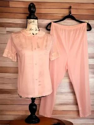 Vtg Archdale Maid Pajama Set 32 Baby Pink Nylon 2pc Top Bottom...