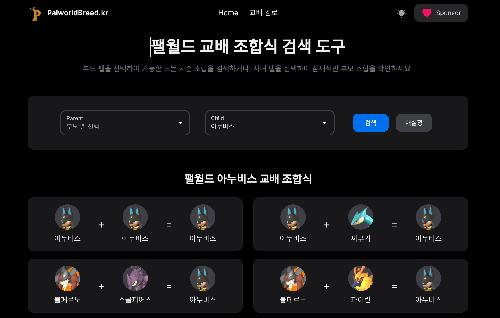 Palworld/팰월드 교배 조합식 검색 사이트 | palworldbreed.kr