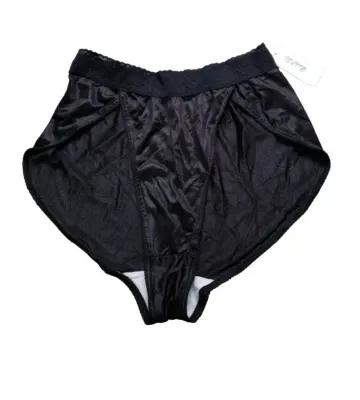 NEW VTG 70s Pam Black Satin Shiny Nylon Panties Sz 7 Cotton...