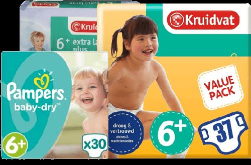 Luiers & Pampers Maat 6+ promoties -75% - Luiergids