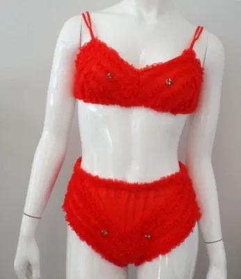 Vintage Pandora RED Sheer Nylon Lingerie Set MEDIUM Ruffle Pin...