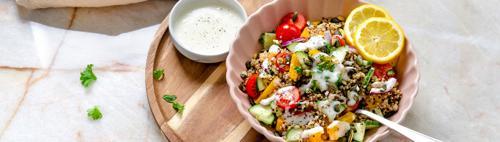 Frisse quinoa salade met paprika, komkommer, tomaat en...