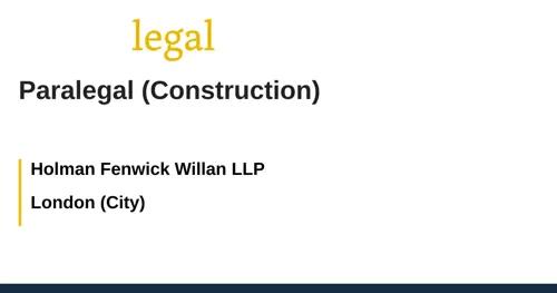 Paralegal (Construction) job with Holman Fenwick Willan LLP...