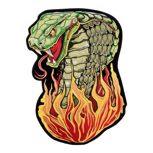 Hissing In Flames Cobra Head Patch, Snake Back Patches