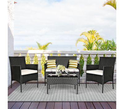 4 Piece Set: Costway Patio Rattan Cushioned Furniture Set - Tanga