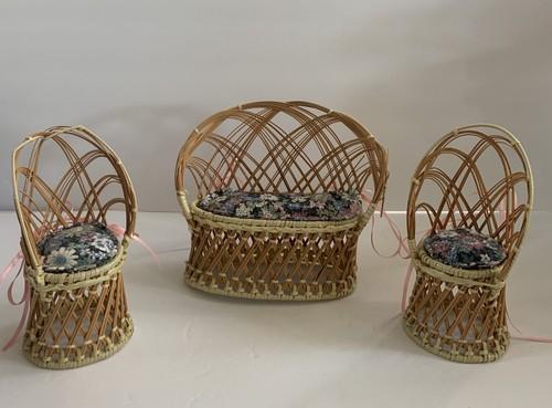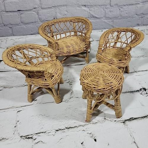 Vintage Rattan Wicker Fashion Doll Furniture Patio Set Loveseat...