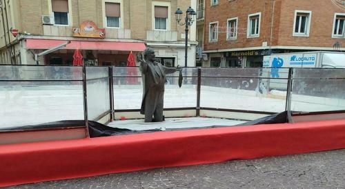 Pavarotti tra i pattinatori, la statua intrappolata nella pista...