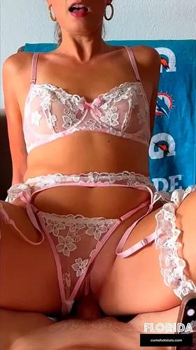 Thick Blonde Pawg in Black Lingerie Getting Her Pussy Pounded...