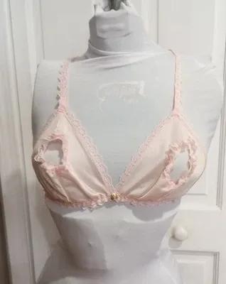 Vintage Unbranded Pink Bra Sexy Lace Sheer Peekaboo Nipple...
