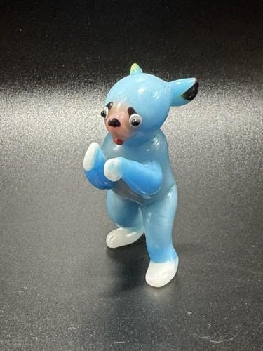 HTF Vintage Solid Peking Glass Hand Blown Blue Bear Animal...