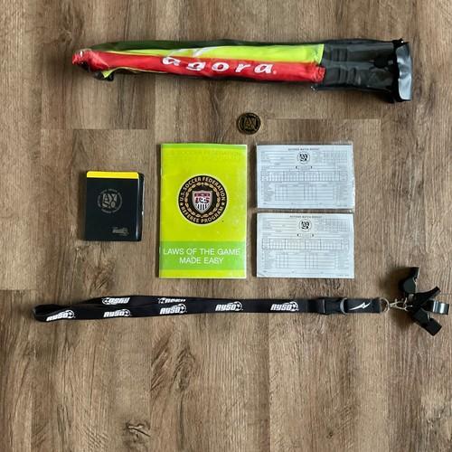 Soccer Referee Kit Flags Score Pad Penalty Cards Coin Lanyard...