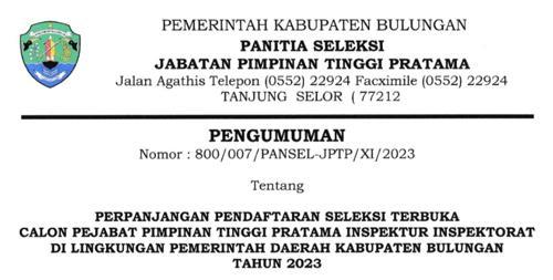 PENGUMUMAN PERPANJANGAN PENDAFTARAN SELTER CALON JPT PRATAMA...