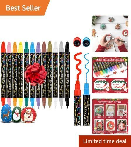 12 Colors Dual Tip Acrylic Paint Pens - Perfect for Vibrant DIY...