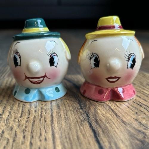 Vintage PY Japan Mr & Mrs Anthropomorphic Egg Head Salt...