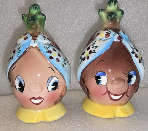 PY JAPAN Anthropomorphic Pineapple Lady Head Salt Pepper Shakers