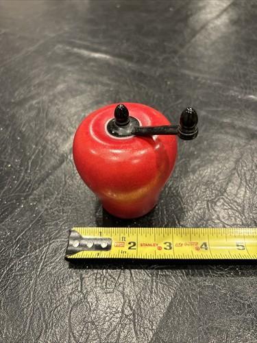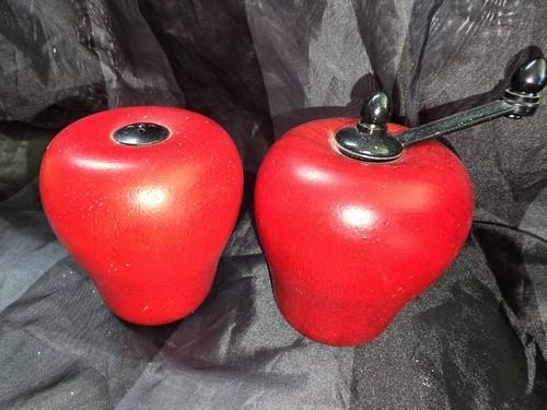VINTAGE WOODEN SALT SHAKER & PEPPER GRINDER APPLE SHAPED RED...