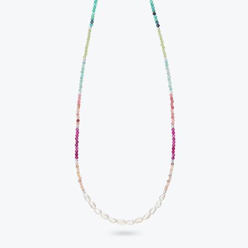 Stříbrný korálkový náhrdelník z minerálů a perel Rainbow...