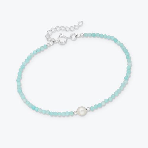 Stříbrný náramek z amazonitu a říční perly - Ag925 | Estemia