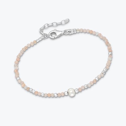 Stříbrný náramek ze slunečního kamene, říční perly a stříbrných...