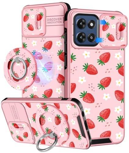 Cute Strawberry Phone Case with Ring Stand & Camera Cover for...