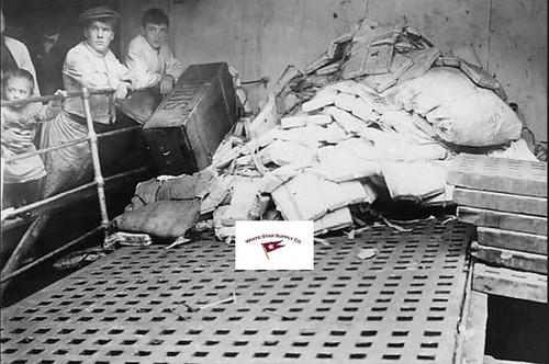 Titanic Lifebelts piled on Carpathia's Cargo Hatch, Reprint...