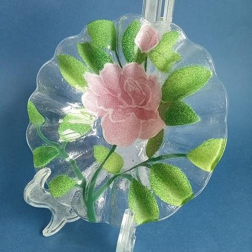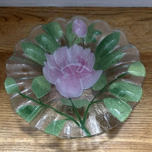 Sydenstricker Fused Glass Bowl Candy Dish Pink Roses