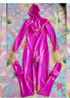 BABY PINK LATEX CATSUIT HANDMADE GLOVES CODPIECE HIDDEN TWO...