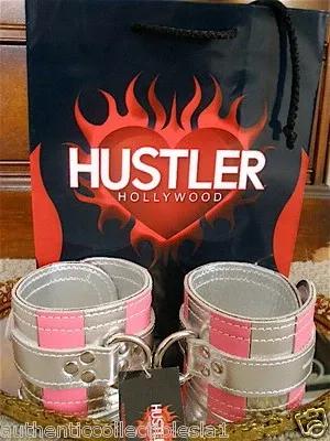 $120 NWT Hustler Pink Leather Ankle Cuffs Restraints Toy Silver...