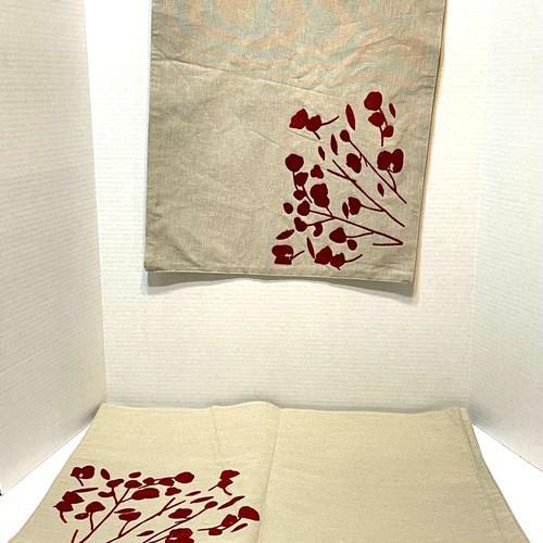 Pier 1 Cotton Tan Placemats Red Velvet Floral Accents 19.5 x...