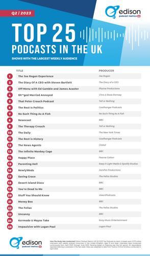The Top 25 Podcasts in the UK from Edison Podcast Metrics...
